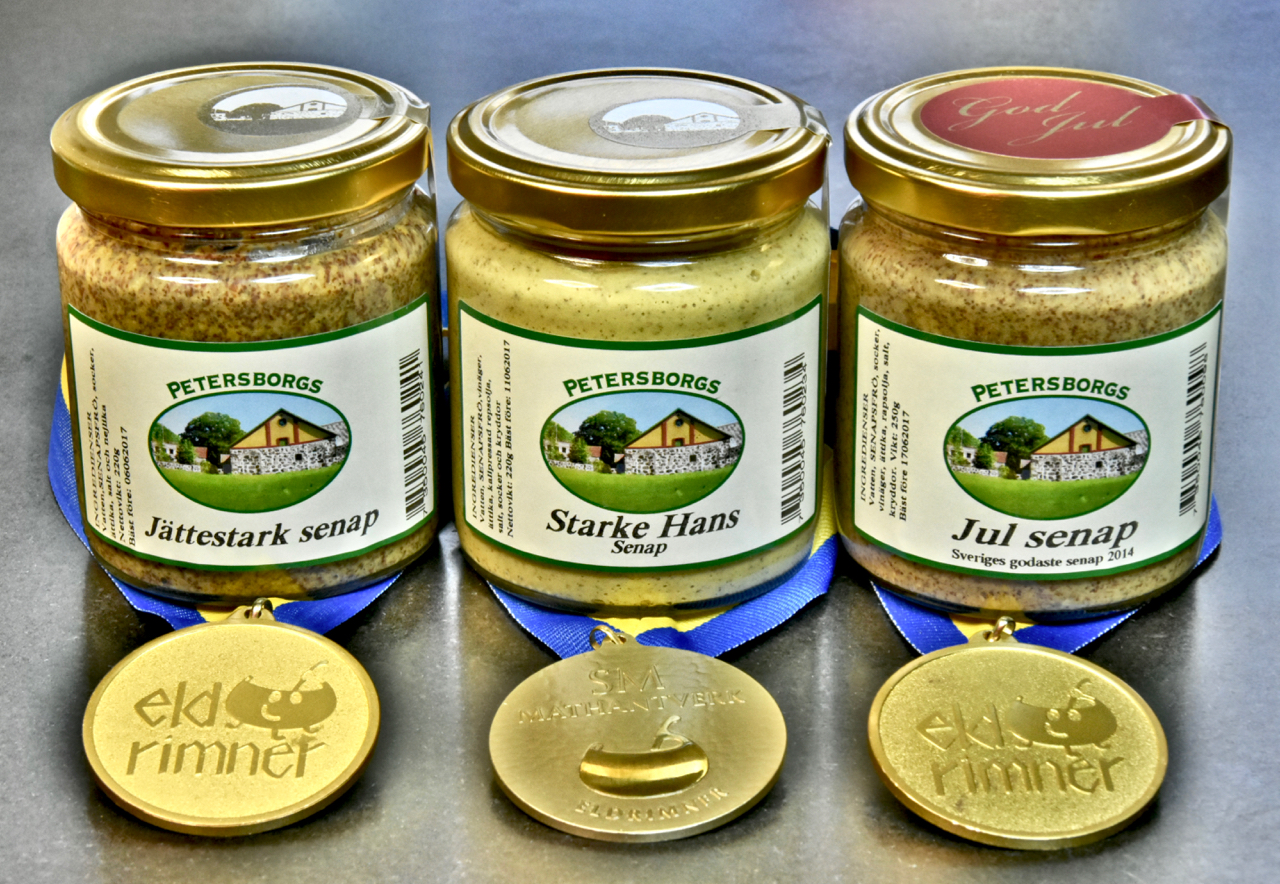 Onsdag 6/12 kl. 14-17 visar Petersborgs Gårdsbutik hur senap tillverkas i Lunds saluhall. Senapstillverknig är ett mathantverk som Monika och Hans är riktigt bra på. De har nämligen vunnit SM-Guld hela tre gånger! Det är vi väldigt stolta över!